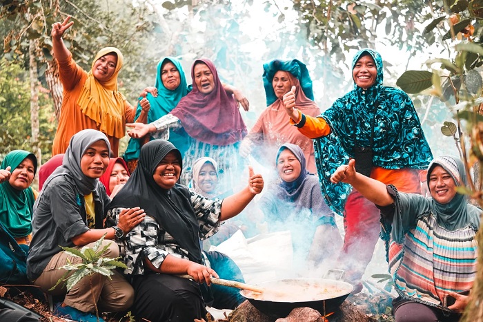 The success of the rangers can also be credited to their embeddedness in the community. Being a ranger is only part of Sumini and other women rangers’ role in the community. They are also coffee growers, honey farmers, tempe makers, wives, mothers and grandmothers. Simply put, they are part of the community. They use their role as family caretakers and community members to support their role as forest protectors. Oftentimes, during friendly, neighbourly meetings, called ‘arisan’, or ahead of a village event such as a wedding, as they chop vegetables and prepare food together, they will take the opportunity to gossip, share stories and explain their mission to protect the forest to the other women. They invite them to join in. Such events allow for a compassionate and grounded exchange of thoughts among villagers about their daily interaction with the forest. Conservation in this sense becomes very practical. How much forest can they clear and use sustainably? What things can they take out of the forest, and what things not? Are there perhaps better alternatives? More importantly, these questions come not from someone far away, but from one of their own.
